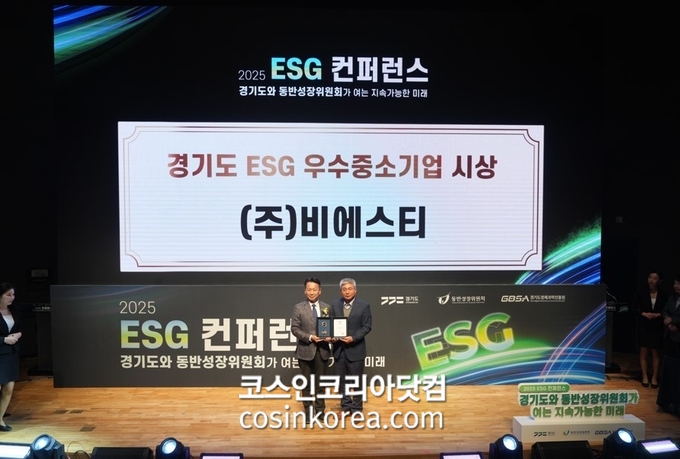 [코스인코리아닷컴 길태윤 기자] 화장품 제조기업 비에스티(대표 이호)가 2025년 경기도 ESG 진단평가에서 ‘우수기업’으로 선정돼 경기도지사 표창을 수상했다.