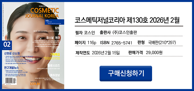 코스메틱저널코리아(CJK)는 화장품 연구개발 기술 분야에서 화장품 연구자들의 연구 논문과 상품기획, 품질관리, 최신 트렌드, 물류, 해외시장 정보 등을 공유하는 연구개발(R&D)과 마케팅 분야 전문 매체다. 2026년 2월호 주요 내용은 아래와 같다.