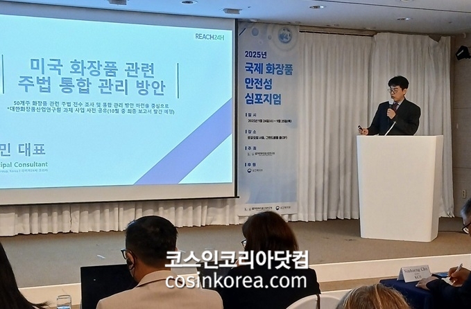 리이치24시코리아 손성민 대표는 미국 연방법과 50개 주별 규제가 시행(예정)되고 있어 미국 수출기업들의 주의를 당부했다. 손 대표는 “연방법 차원(FDA, MoCRA)에서 화장품 규제를 통일적으로 운영하고 있으나 일부 주에선 별도 주법으로 규제하고 있다”고 경고했다.