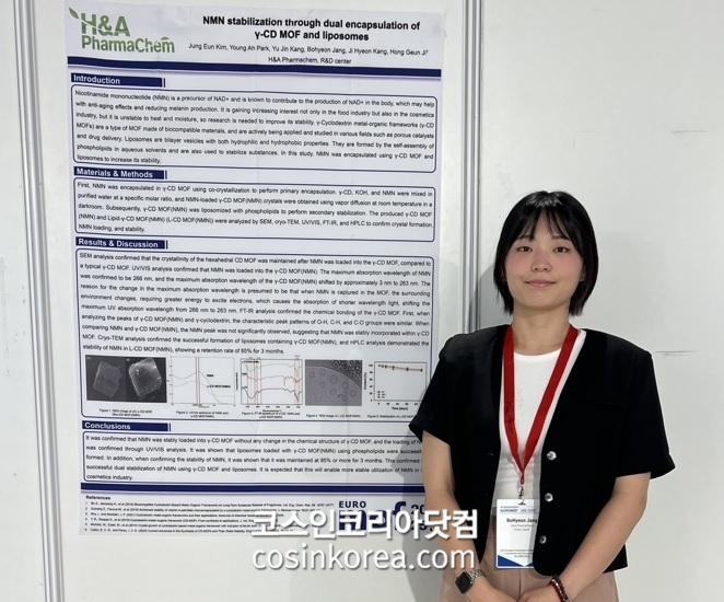 [코스인코리아닷컴 길태윤 기자] ㈜에이치엔에이파마켐(대표 유효경)이 지난 9월 21일부터 24일까지 그리스 크레타섬 헤라클리온에서 열린 ‘2025 EURO MOF 학회(6th European Conference on Metal Organic Frameworks and Porous Polymers)’에 참가해 NMN(Nicotinamide Mononucleotide) 이중 안정화 기술에 대한 연구 성과를 발표했다.
