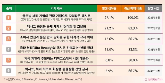 멕시코는 화장품 시장 확대에 맞춰 규제 체계 개편이 주목받고 있다. 세계 9위 화장품 시장인 멕시코에서는 중복된 서류 제출과 복잡한 승인 절차 등 기존 규제 시스템의 비효율성으로 인해 시장 진입이 지연되는 문제가 제기되어 왔다.