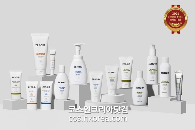[코스인코리아닷컴 길태윤 기자] 뷰티&헬스케어 기업 네오팜(대표 김양수)의 메디컬 스킨케어 브랜드 제로이드(ZEROID)가 ‘2026 고객이 가장 추천하는 브랜드 대상’ 더마코스메틱 부문에서 2년 연속 대상을 수상했다.