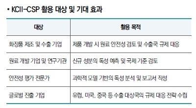 CSP 시스템을 통해 △ 유럽, 미국 수출의 규제 원료 여부 사전 확인 △ 국내 미등재 원료를 사용할 경우 QSAR 기반 독성 예측 등을 할 수 있다. 연구원은 CSP 활용 교육을 통해 실무자들이 직접 시스템을 사용해보며 Read-Across 접근법, TTC(독성임계치) 등을 실습할 수 있다.
