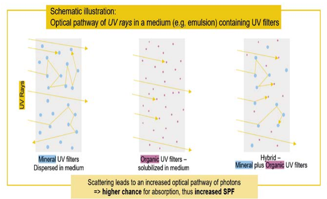 이러한 배경에서 다시 주목받고 있는 접근이 하이브리드 자외선 차단제다. 유기와 무기 자외선 필터를 병용해 각각의 장점을 살리고 단점을 보완하는 방식으로 최근 단순 혼합이 아닌 조합 구조와 분산 설계까지 고려한 정교한 접근이 강조되고 있다.