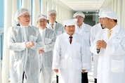 [코스인코리아닷컴 길태윤 기자]화장품 OEM·ODM 전문기업 ㈜서울화장품(회장 한광석)은 10일 정상혁신한은행장이 인천 남동공단의 본사 공장을 방문, 현장 애로사항을 청취하고 협력 방안을 논의했다고 밝혔다. 신한금융그룹은 지난달 11일 서울 중구 본사에서 ‘그룹 생산적 금융 추진위원회’를 개최하고, 올해부터 본격화되는 생산적 금융의 실행력과 효과성 제고 방안을 논의했다. 이번 현장 방문 역시 생산적 금융 확대 전략의 연장선에서 추진됐다는 설명이다. 이날 정상혁 은행장은 ㈜서울화장품 한광석 회장과 한정수 대표를 만나 글로벌 시장 확대에 따른 생산능력 확충 계획과 중장기 성장 전략을 청취했다. 이어 연구소와 생산시설을 둘러보며 설비 운영 현황과 신사업 추진 과정 전반을 살펴봤다. 현장 간담회에서는 ▲ 수출 물량 증가에 대비한 공급 역량 강화 ▲ 글로벌 트렌드 변화에 따른 신제품 제형 개발 전략 ▲ 해외 시장 진출 과정에서 필요한 금융·비금융 지원 사항 등에 대해 심도 있는 논의가 이뤄졌다고 관계자는 설명했다. 정상혁 은행장은 “우수한 기술력과 성장 잠재력을 갖춘 기업이 글로벌 시장에서 경쟁력을 확보할 수 있도록 맞춤형 협력과 금융 지원을 더욱 확대하겠다