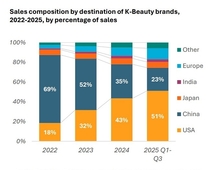[코스인코리아닷컴 김민석 기자]K-뷰티는 대중 편중 수출 구조에서 벗어나 글로벌 시장으로 다변화에 성공했다는 평가다. 또 2026년 환율은 상고하저(上高下低) 1400원대로 전망됐다. 무역협회는 ‘2025년 수출입 평가 및 2026년 전망’ 보고서를 내고 “화장품은 중국 내 한류 열풍으로 중국 비중이 53.2%(‘21)까지 확대됐으나, 올해 대미 수출이 크게 증가하며 사상 최초로 대중 수출을 상회했다”라고 설명했다. (1~10월 누계 수출 점유율: 미국 19.8% 〉 중국 18.3%) 11월 누계 화장품 수출은 104억달러로 이미 작년(102억달러) 기록을 넘어섰다. 북미 외에도 아시아, 유럽, 중동 등 여러 권역의 국가 수출도 두 자릿수 성장하며 다변화에 성공했다는 분석이다. [국가별 화장품 수출증가율(yoy%, '25.1~10월) : (中) -18.7 (美) 18.0 (⽇ 6.8 (홍) 27.5 (폴) 112.3 (UAE) 59.1 ) 한편 2026년 전망에서 무협은 경제성장률은 2.9~3.1%로 예상되어 2025년 대비 성장세가 소폭 둔화될 것으로 봤다. 미국 관세 영향이 지연되며 2025년 세계 경제는 예상보다 견조한 흐름을 보였으나, 글로벌