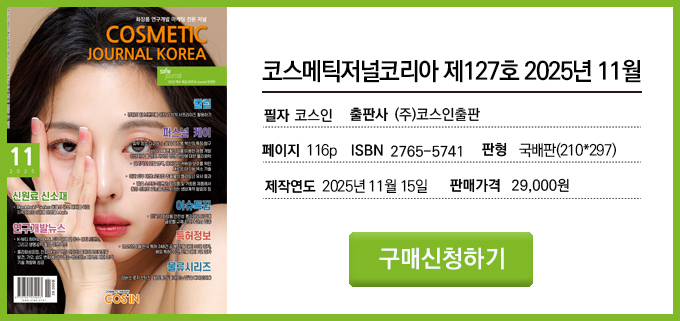 코스메틱저널코리아(CJK)는 화장품 연구개발 기술 분야에서 화장품 연구자들의 연구 논문과 상품기획, 품질관리, 최신 트렌드, 물류, 해외시장 정보 등을 공유하는 연구개발(R&D)과 마케팅 분야 전문 매체다. 2025년 11월호 주요 내용은 아래와 같다.