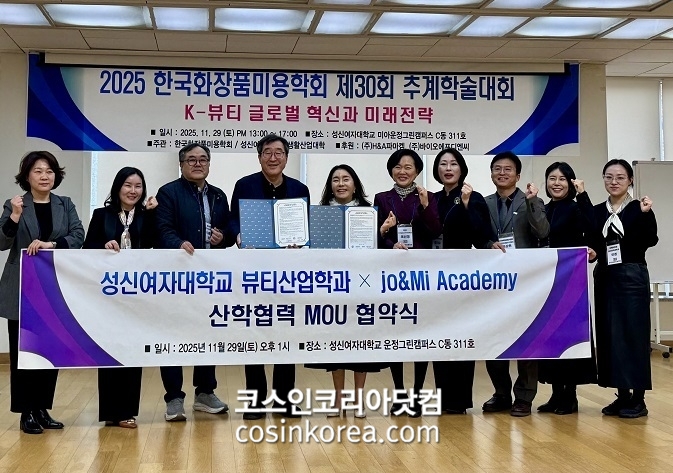 행사에 앞서, 한국화장품미용학회와 성신여자대학교 뷰티산업학과는 Jo&Mi 아카데미와 산학협력 MOU를 체결하였다.