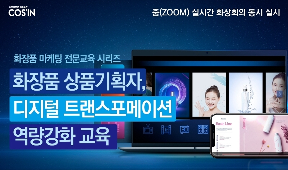코스인은 화장품 마케팅 전문교육 시리즈로 ‘화장품 상품기획자, 디지털 트랜스포메이션 역량강화 교육’을 실시한다. 이번 교육은 3월 17일 서울 가산동에 위치한 스타밸리 902호 코스인화장품교육센터에서 진행되며, 온라인 실시간 화상회의(ZOOM)를 동시에 실시한다.
