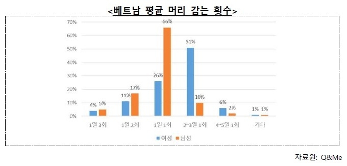 한편 베트남 소비자는 헤어케어 제품을 선택할 때 모발 보습을 가장 중요한 기준으로 삼고 있다. 제품별로 보습-향기-건조·부스스함 완화가 주요 요인이다.