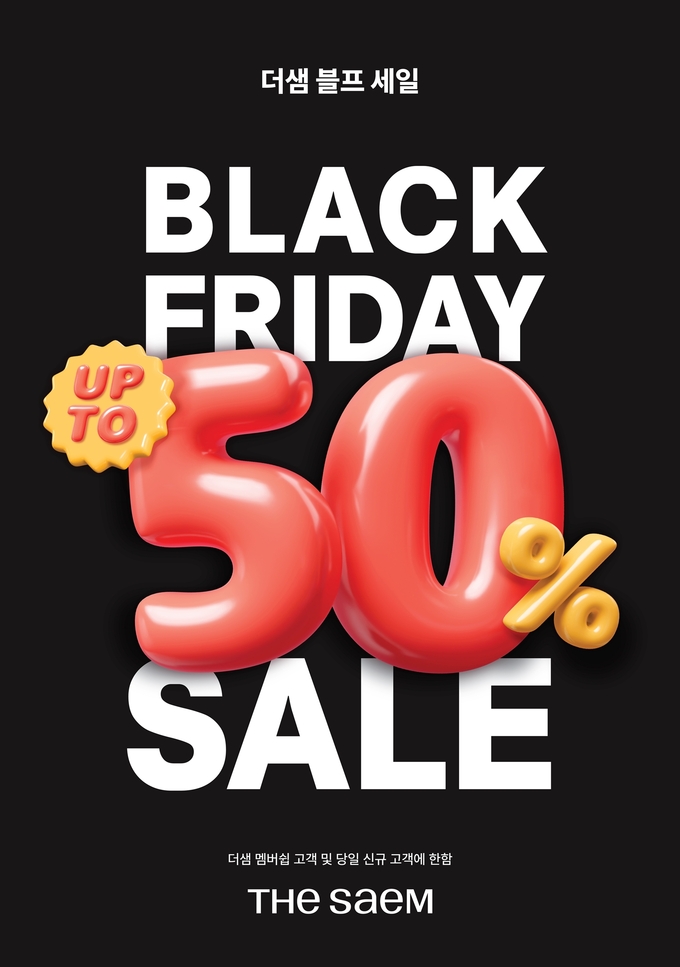 [코스인코리아닷컴 길태윤 기자] 더샘(대표 임진서)이 1년에 단 한 번 열리는 ‘블랙프라이데이’를 맞아 오는 11월 12일부터 16일까지 5일간 최대 50% 할인 이벤트를 진행한다.