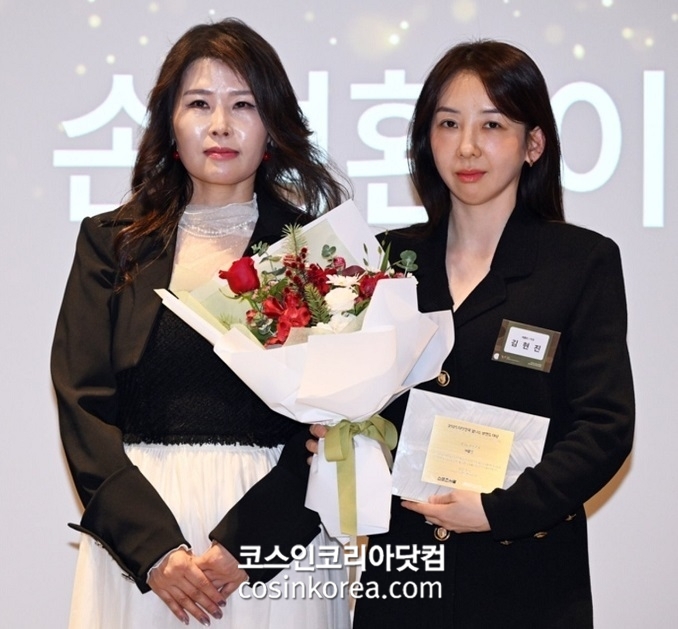 [코스인코리아닷컴 길태윤 기자] 국제웰니스협회 김수미 이사장은 10일 서울 강남구 웨스틴 서울 파르나스에서 열린 ‘2025 대한민국 웰니스 브랜드 대상’에서 시상자로 나와 ▲ 생활가전 부문 휴롬 이수민 실장 ▲ 클린뷰티 부문 에콜린 김현진 차장 ▲ 웰니스 혁신 테크 부문 슬립웨이브 노승표 대표에게 각각 상을 수여하고 기념촬영을 했다.
