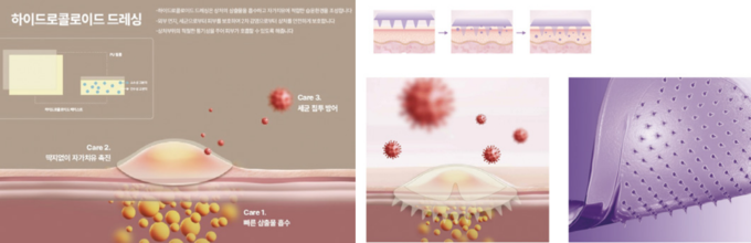 하이드로콜로이드는 상처에서 나오는 진물(삼출액)을 흡수해 젤 형태로 변하면서 상처를 촉촉하게 유지하고 보호하는 기능성 소재다. 소비자에게 ‘여드름 패치’나 ‘상처 보호 드레싱’으로 널리 알려져 있다. 수분을 흡수하고 보존하는 기능을 가진 고분자 물질로 상처 부위를 외부 오염물질로부터 차단하고 일정한 온도와 습도를 유지해 세균 번식을 억제한다.