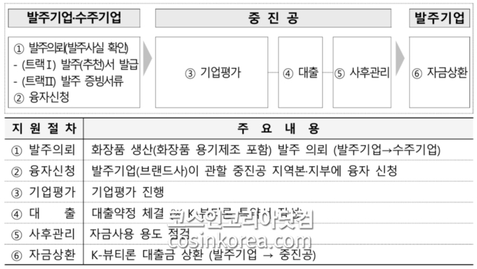 지원은 수주기업의 특성에 따라 두 가지 트랙으로 운영된다. 수주기업이 (사)대한화장품협회 회원사의 경우 ‘트랙Ⅰ’을 통해 신청할 수 있으며, 회원사가 아닌 일반 화장품 제조사나 용기, 펌프, 박스 등 필수 부자재 제조사와 거래하는 기업은 ‘트랙Ⅱ’로 신청할 수 있다.