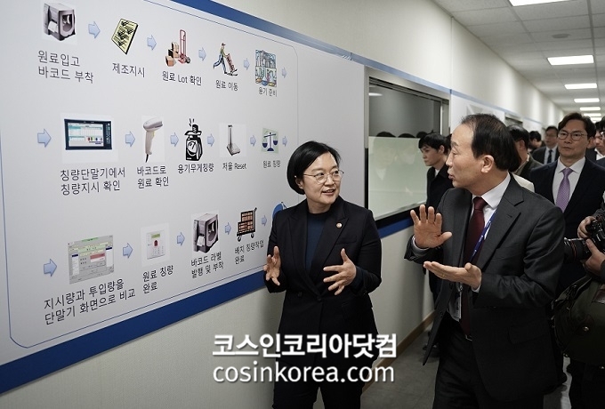 이날 한성숙 장관은 (주)예그리나의 생산 라인을 견학하며 실시간 품질 모니터링 시스템과 자동화 설비가 구축된 스마트 공장 현장을 살폈다.