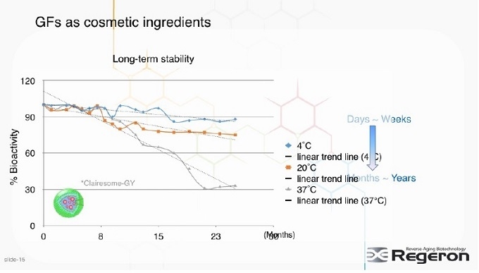 일반적으로 성장인자의 효능 및/또는 구조는 용액 상태에서 며칠 또는 몇 주 정도만 지속되며, 수개월 이상 유지되는 경우는 흔치 않다. 화장품 활성 성분으로서의 성장인자의 효능은 피부의 살아있는 세포층으로의 전달과 수용체와의 상호작용, 그리고 표적 세포 및 조직에 생물학적 신호를 전달하는 능력에 전적으로 달려 있다. 따라서 무엇보다 먼저 성장인자의 생물학적 활성과 물리적 완전성을 보호하고, 이를 손상되지 않은 상태로 표적 세포에 전달하는 것이 필수적이다.