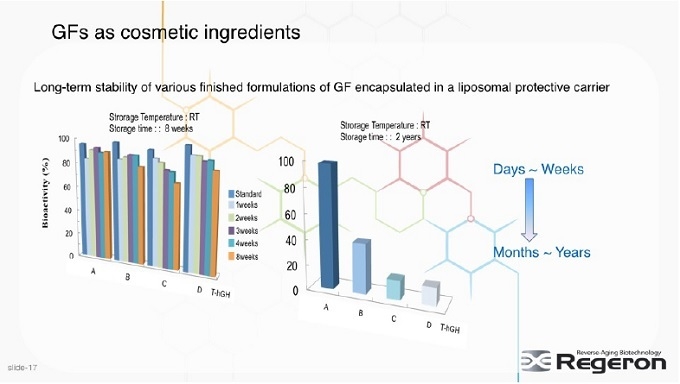 이는 본래 매우 불안정하다고 알려진 거대분자 성장인자가, 유연한 리포좀 보호 전달체에 캡슐화된 용액 상태에서는 오히려 소분자 화합물보다 더 오래, 더 안정적으로 유지될 수 있다는 다소 역설적인 사실을 보여준다.